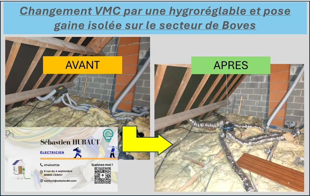 Chez SEB'ELEC, nous sommes fiers de vous annoncer notre dernière intervention dans le secteur de Boves : le remplacement d'une VMC par une VMC hygroréglable avec les bouches associées. Cette opération s'inscrit dans notre engagement à fournir des solutions électriques de pointe et adaptées aux besoins spécifiques de nos clients.