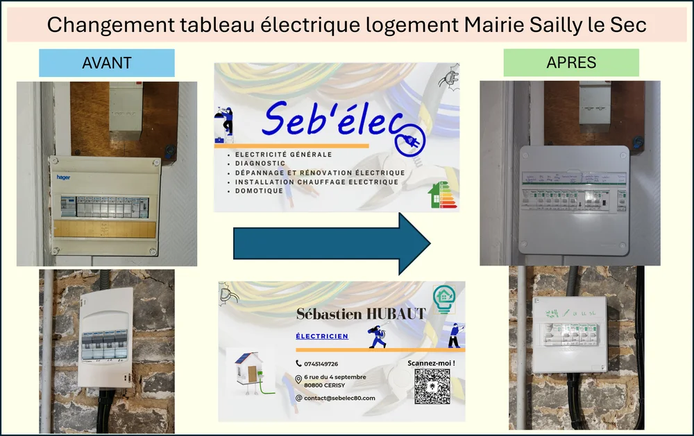 Pour plus d'informations ou pour une demande de devis, n'hésitez pas à nous contacter. SEB'ELEC est à votre disposition pour vous accompagner dans tous vos projets électriques.