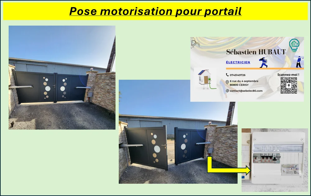 Chez SEB'ELEC, électricité générale, couvrant une vaste gamme de services allant de l'installation de bornes de recharge pour véhicules électriques à la domotique. Récemment, nous avons réalisé un projet d'installation de motorisation pour un portail en aluminium, accompagné d'une modification du tableau électrique pour garantir une protection optimale. Basés à Amiens, nous intervenons également dans les régions environnantes telles que Corbie, Villers-Bretonneux, et Albert.