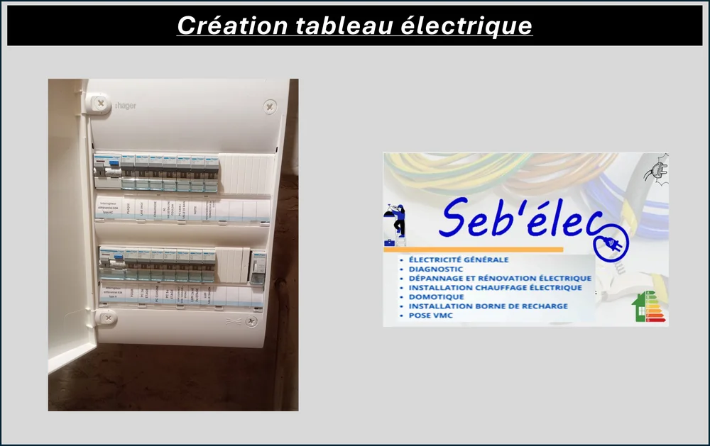 Chez SEB'ELEC, nous proposons une gamme complète de services pour répondre à tous vos besoins en électricité. Que ce soit pour la création d'un tableau électrique, l'installation de prises électriques, ou encore la mise en place de chauffage électrique, notre équipe est prête à vous offrir des solutions sur mesure. Nous sommes également spécialisés dans les diagnostics électriques et la domotique, vous garantissant une maison connectée et sécurisée.