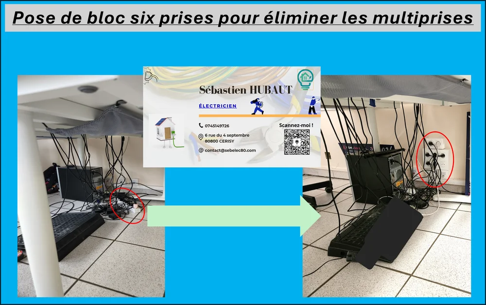 Chez SEB'ELEC, nous sommes fiers de proposer des solutions électriques et sécurisées à nos clients. Récemment, nous avons réalisé à Albert une installation de blocs de 6 prises avec une protection supplémentaire au tableau électrique. Cette intervention vise à éliminer les multiprises souvent surchargées et à garantir une sécurité électrique maximale dans votre domicile ou votre entreprise. En tant qu'experts en électricité générale, nous comprenons l'importance de la sécurité et de l'efficacité dans chaque installation.